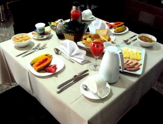 Café da manhã - de 2ª à 6ª, servido das 6:00hs às 10:00hs. Sábados, domingos e feriados, servido das 6:00h às 10:30hs.